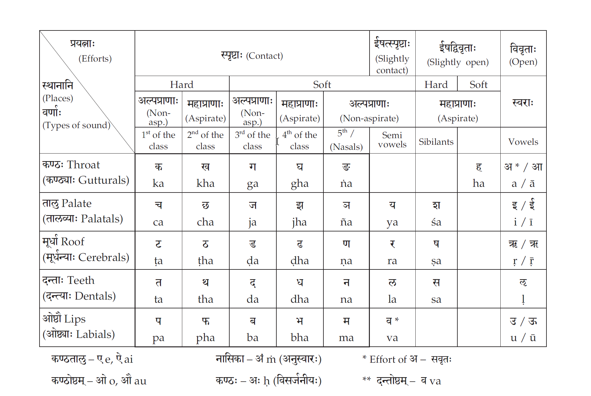 Consonants consist of: Five class consonants each consisting of five consonants / वर्गव्यञ्चनानि [25]